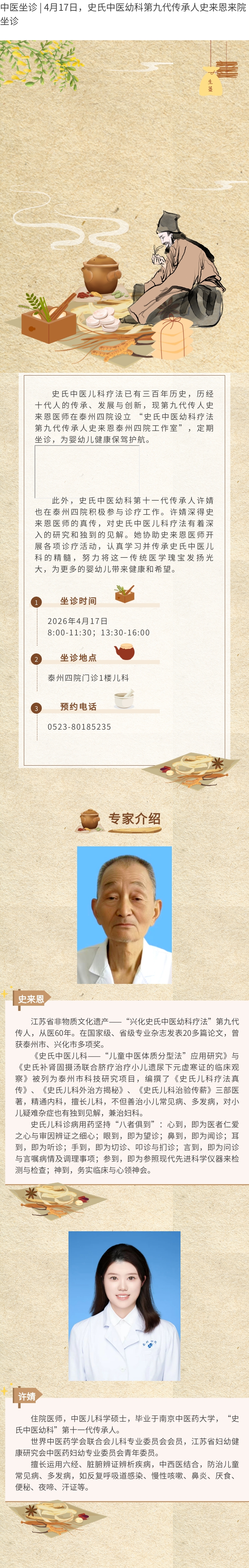 4月17日,史氏中医幼科第九代传承人史来恩来院坐诊 ...