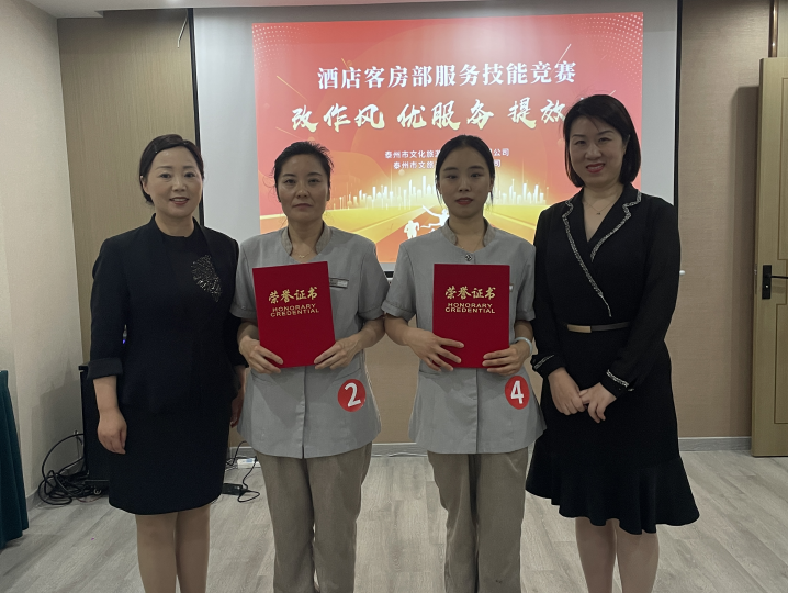 评委们根据选手在仪容仪表、铺床操作规范、专业理论知识以及创意展示等方面的表现进行了综合评分,最终评选出第一名和第二名,分别授予技能标兵称号和岗位能手称号。